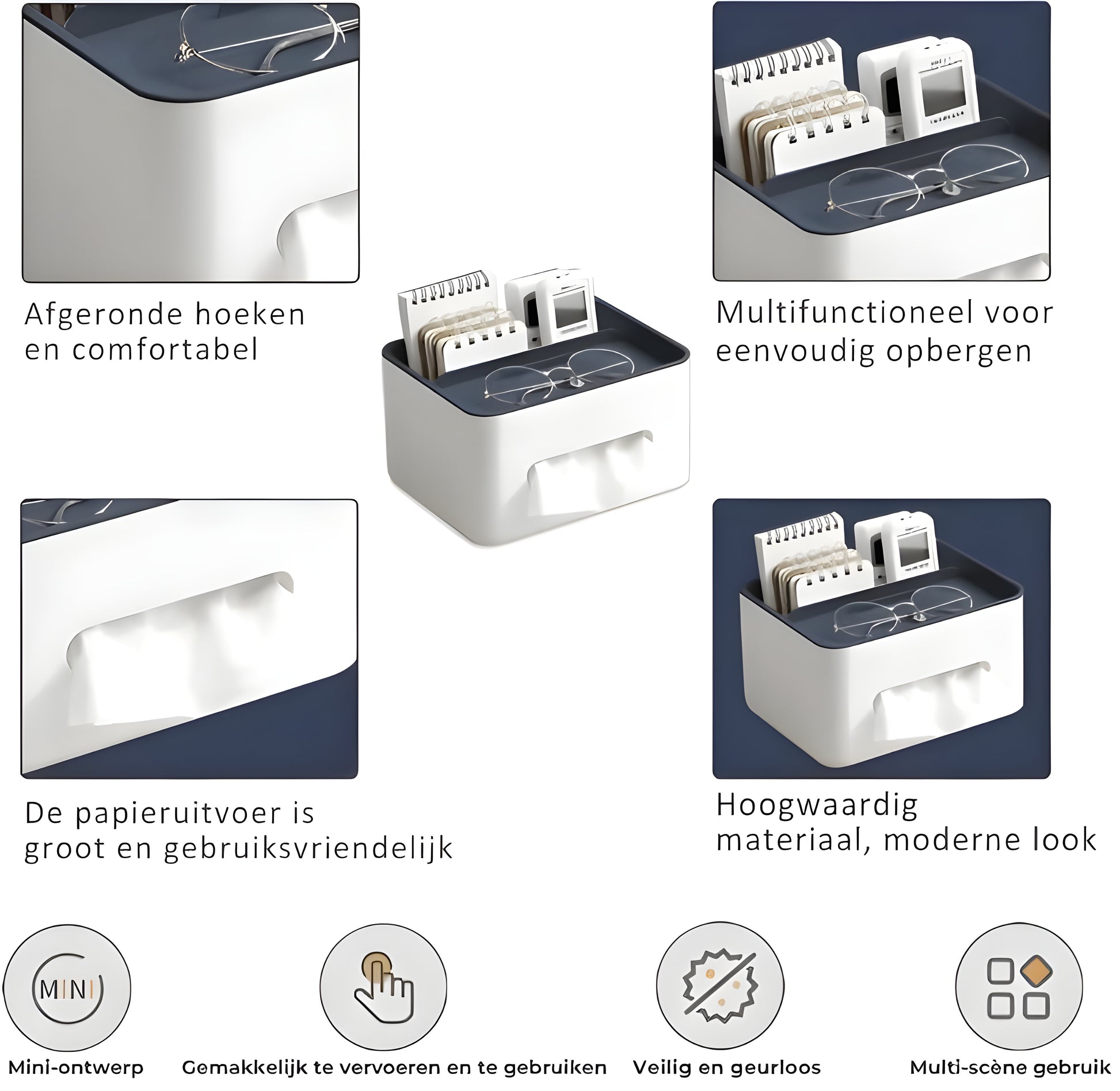 Geef je interieur een stijlvolle upgrade met deze multifunctionele tissuebox! Gemaakt van hoogwaardig ABS en PP-materiaal biedt deze box duurzaamheid, stabiliteit en een modern design dat past in elke ruimte.